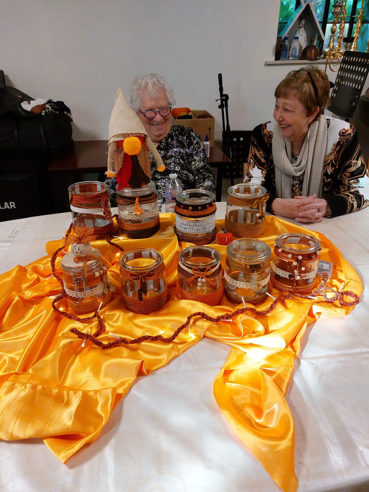Dinsdag 21 oktober was de crea groep Stokrooie weer gezellig samengekomen Onze verantwoordelijke Marie Jeanne had weer een mooi project uitgewerkt. Met oude weckbokalen maakten