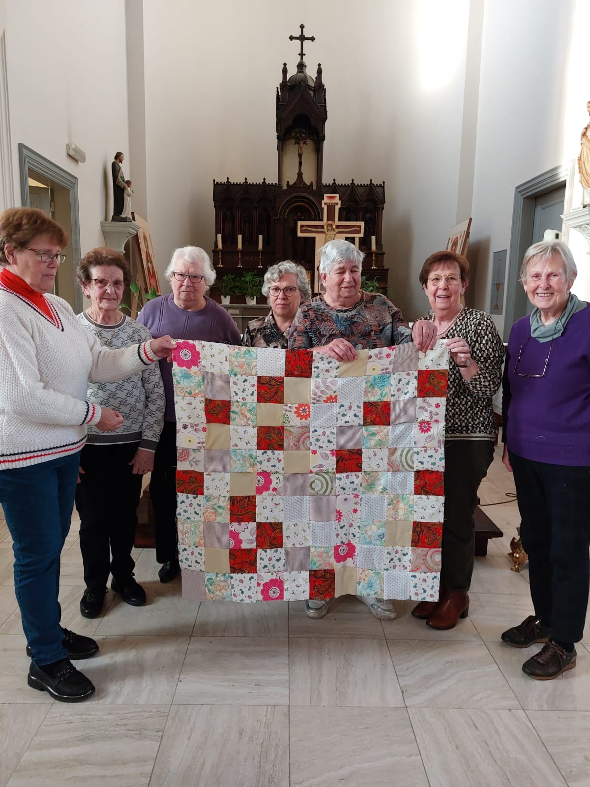 De crea groep van Samana Stokrooie werkt mee aan de grootste mantel een project van Samana Vlaanderen. In heel Vlaanderen worden stukjes stof verzameld die