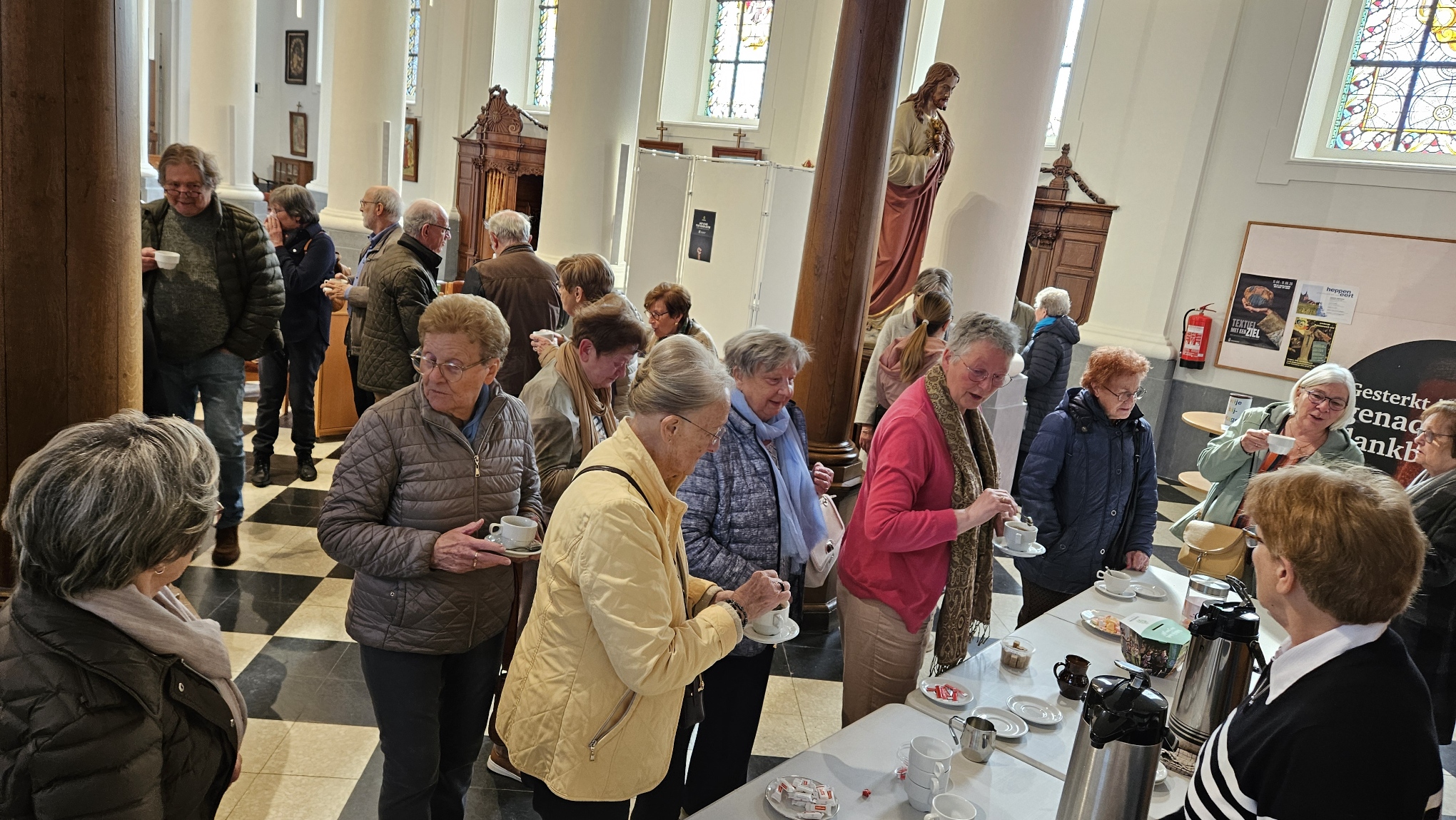 De vijfde zondag van de vasten was er de jaarlijkse “koffiestop” in de kerk. Na de viering van 9.30 u konden de aanwezigen van een