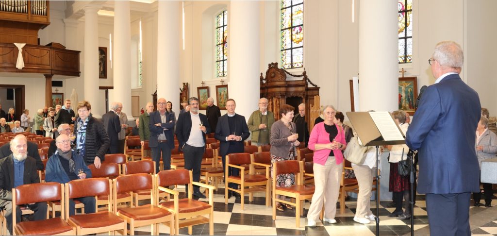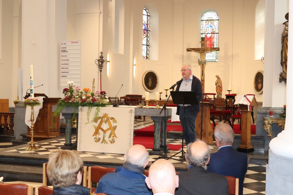 De voorzitter van de kerkfabriek maakte in zijn toespraak een overzicht van de vele werken en restauraties die de voorbije jaren in en aan de kerk zijn uitgevoerd.