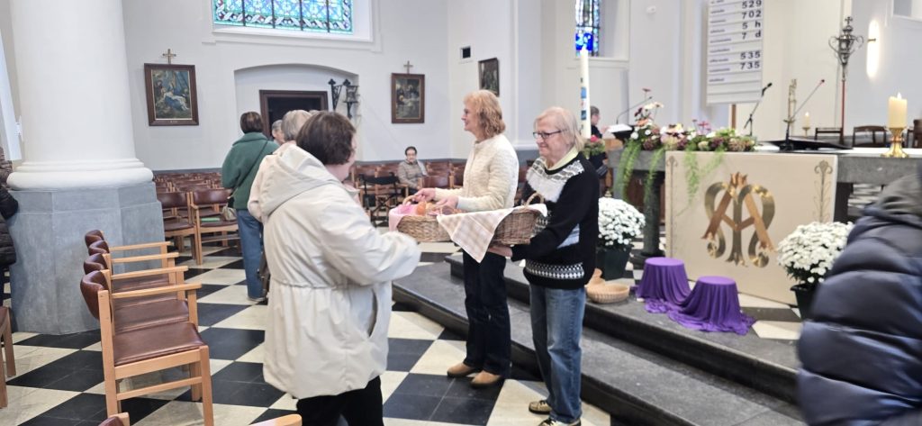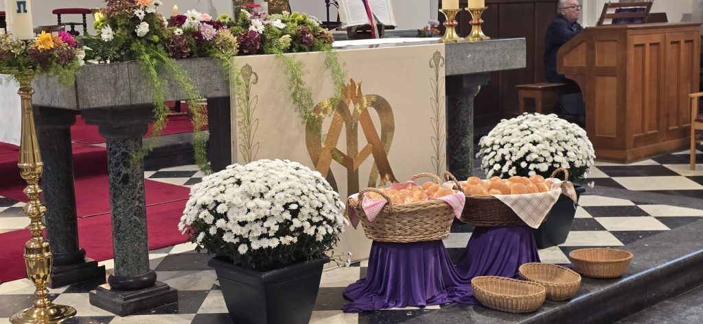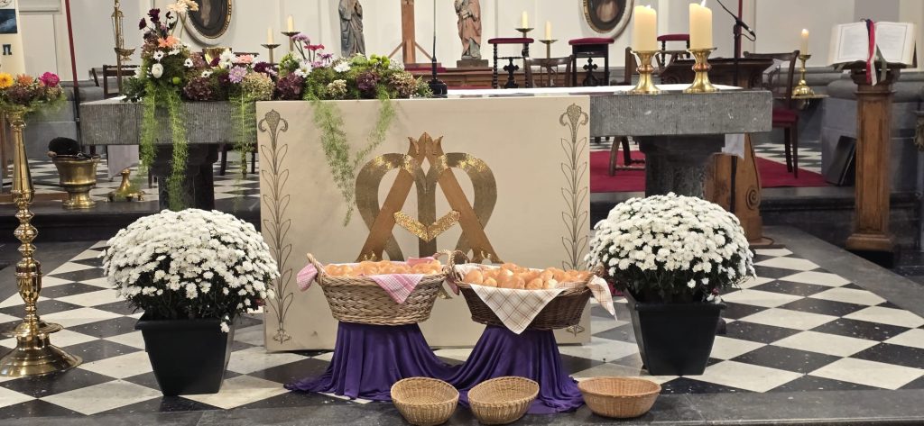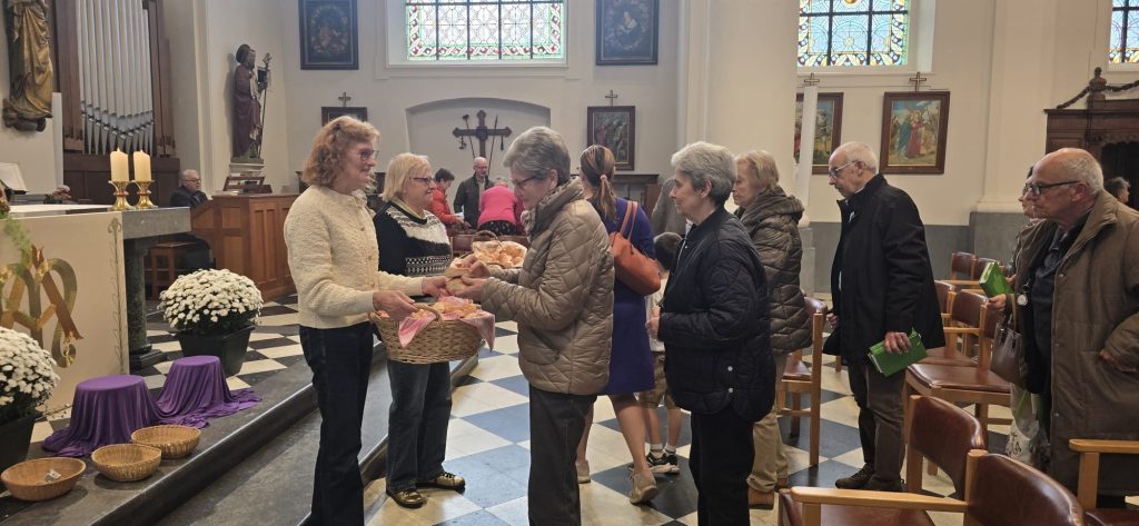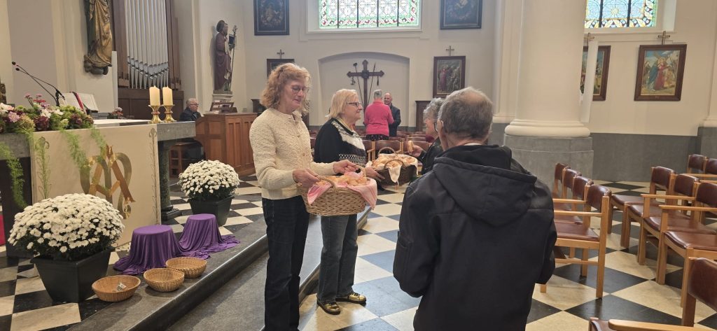 Tijdens de zondagsviering van 9.30 u in Kermt werden dan ook broodjes gezegend en nadien aan de aanwezigen uitgedeeld.