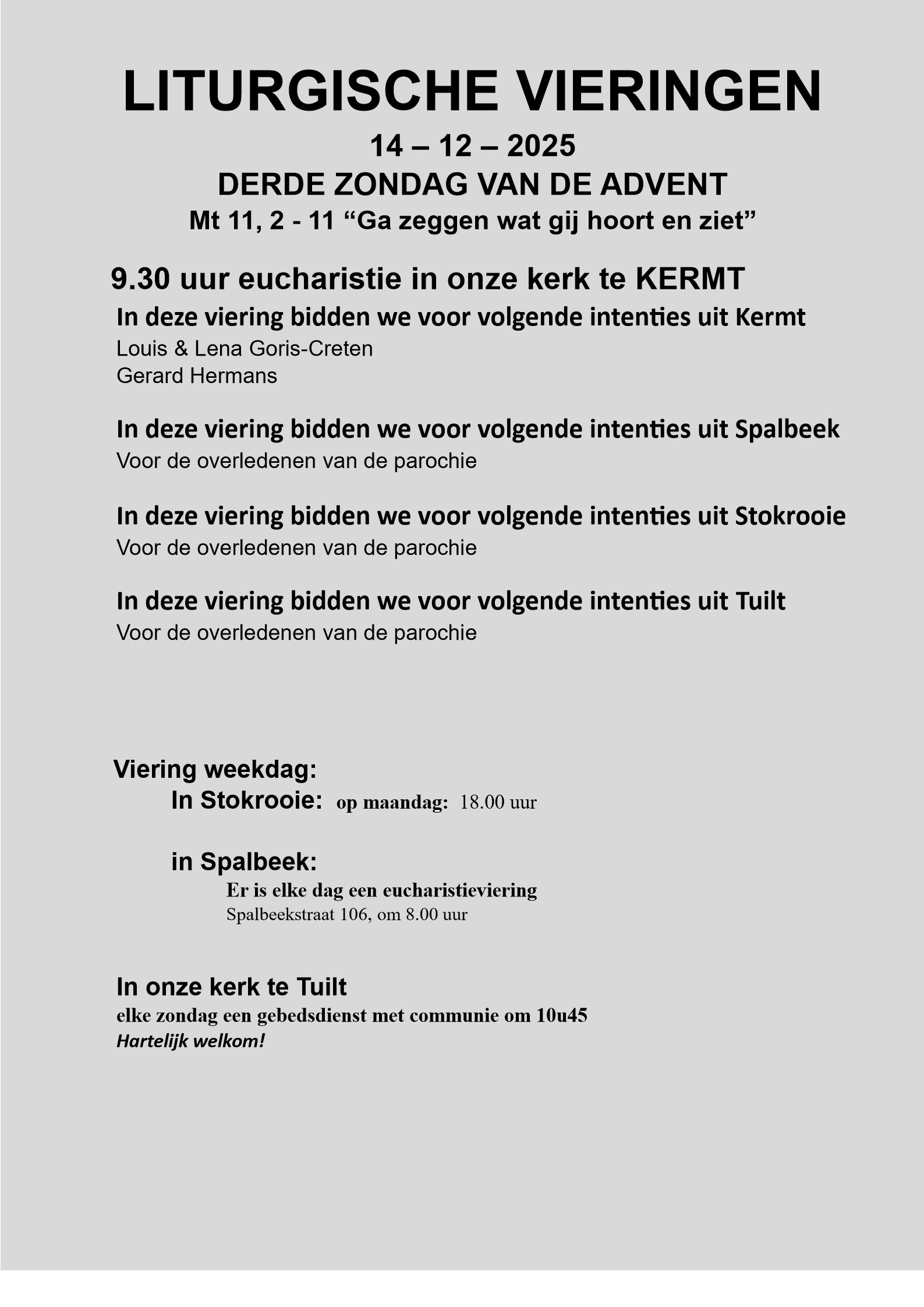 Pastorale eenheid St. ElisabethVormelingen 2024(Spalbeek, Stokrooie, Tuilt en Kermt) Op maandag 9 oktober om 20.00 u. voorzien we een ouderavond voor de ouders van de