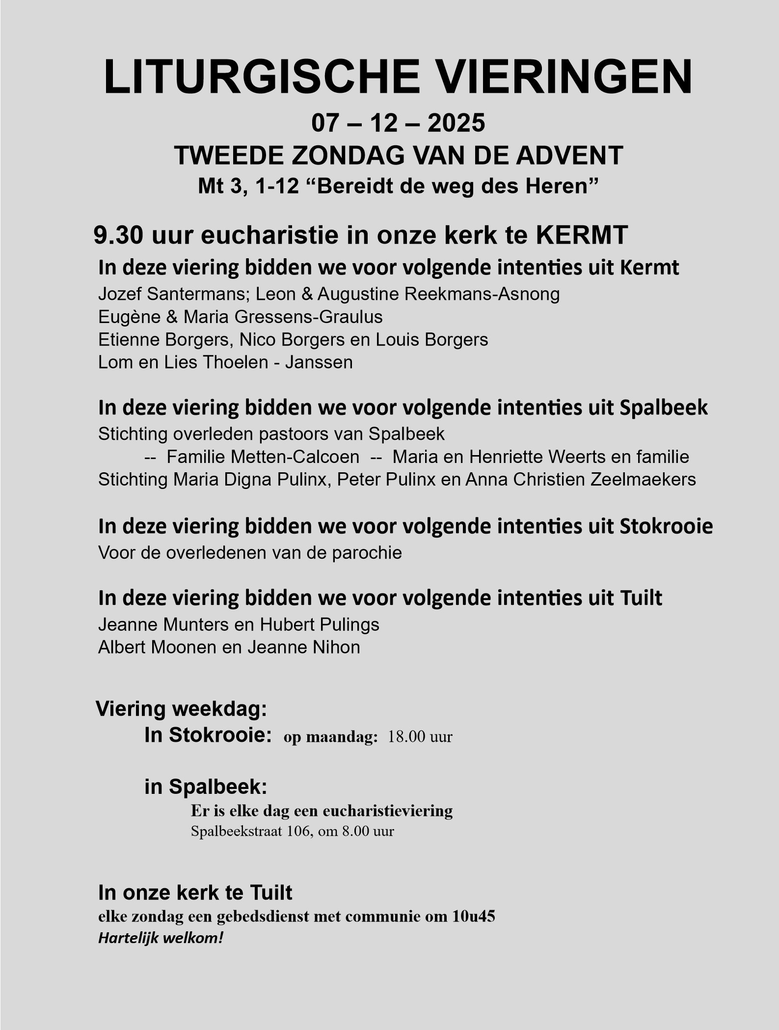 Pastorale eenheid St.-Elisabeth: Naamopgave Kermt en Spalbeek